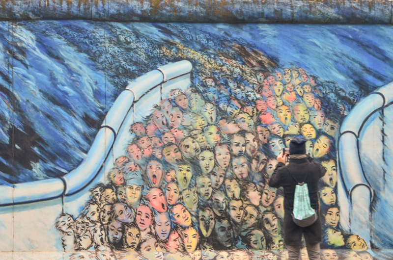 Eventually we arrived at a place very dear to Claire; Checkpoint Charlie. Walking in the steps of her father whilst a young service man. A very different street to that of the early 1950s. Again the mass of visitors who were free to cross back and for across the line purely to get a better angle on their camera-phone with little regard for the risk, nay, the impossibility of doing such a mere 40 years ago. We completed our tour of the West and planned an early start to visit the remnants of the East in the morning.