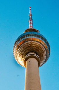 The next stop was something on my bucket list and according to Apple Maps was not an excessive walk for the majority but was a daunting prospect for me. Having several stops and coffees I managed the 1/3rd mile to the “TV Tower”. The largest single building in all Germany. Built to spread propaganda giving a communist bias on the news being overheard from the west. Today the 300m+ plus structure is a revolving restaurant that offers uninhibited views of Berlin (at a price). 25 euros to get in, or 35 with a single drink and its 50 if you fancy a sausage with your drink. The true price of communism! I was happy to take photographs of the outside from ground level for the princely sum of zero euro. As I shot and adjusted my position to achieve better angles, I spied the sun illuminating, making a silhouette of the “Berlin Cathedral”. A poignant image when you consider how the relationship between Church and State was during the Leninist period.