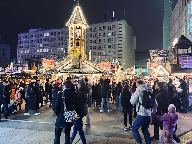 We returned to our hotel, crossing Alexanderplatz and having one last look at the market. As often is the case, these markets aren’t what they profess to be but are events. Places to eat and drink and get the odd gift. It is a spectacle without reservation and it is good to see people coming together from all over the world; every background, culture, language united in one aim, of seeing the Christmas market, and being a part of it. Berlin has intrigued me to an extend that I will return… for longer…some day.