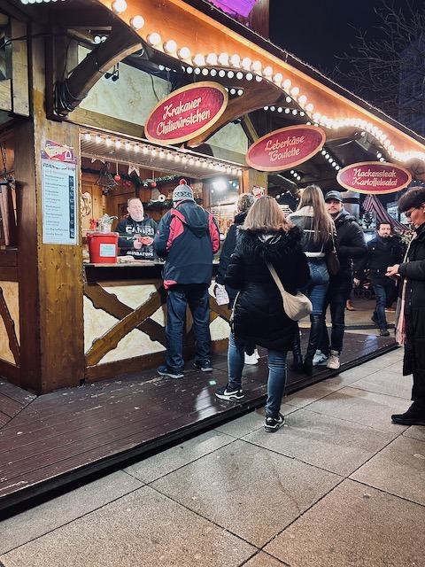 After an hour or 2 of rest we explored the market. Sampling the local delicacies. Currywurst was invented in Berlin and although I came thinking of sausage and sauerkraut with boiled potatoes, the local cuisine is Currywurst and Kebabs. The curry invented to mask the poor quality of the pork in the post World War 2 days, and the Kebab introduced by the Turkish immigrants who poured in to rebuild the Federal Germany.